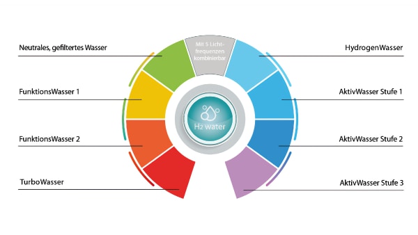 Das brandneue Licht-Modul mit fünf wählbaren Frequenzen ermöglicht für jede Lebenssituation das passende Wasser.